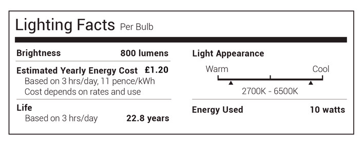 - Economize Energia - Reduza o consumo de energia em até 80% sem perda de brilho ou qualidade, comparado a uma lâmpada incandescente de 60W